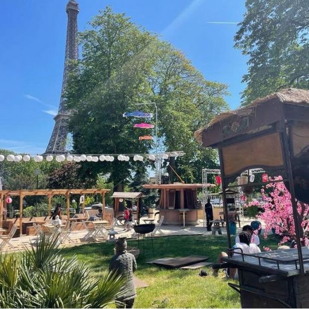 Hanami is the name of a summer terrace with a view of the Eiffel Tower, set up on the forecourt of the Aquarium de Paris. A new ephemeral restaurant-terrace that takes up residence in the heart of nature, among the cherry trees of the Trocadรฉro. Facing the Seine and the Eiffel Tower, the Jardins du Trocadรฉro are transformed for the summer season into an ephemeral terrace, from Tokyo to Paris. But this is far from the only advantage offered by this ephemeral spot. Hanami is also an open-air Tokyo food court featuring Japanese street food. Under the trees of the Trocadรฉro gardens, “Yataรฏ” have been installed, the traditional mobile stalls that make the streets of Tokyo famous.